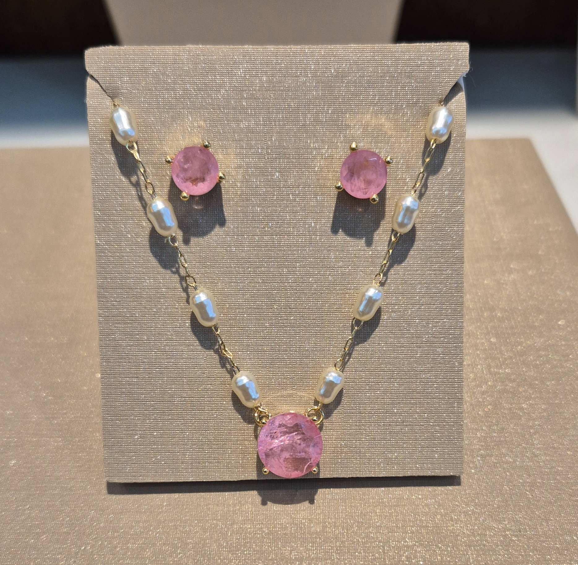 Conjunto Pérola arroz com pedra fusion rose